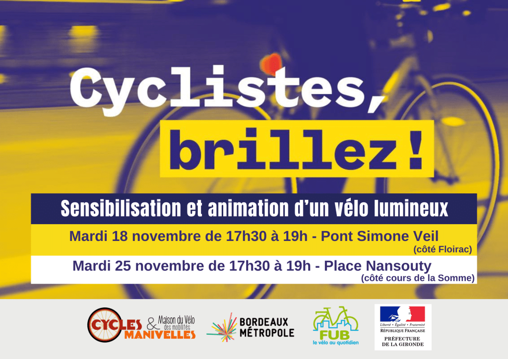 Du 1er novembre au 15 décembre 2025, les associations membres, partenaires et acteurs·trices engagé·es en faveur des mobilités actives se mobiliseront pour rappeler l’importance d’un bon éclairage afin de pédaler en toute sécurité.