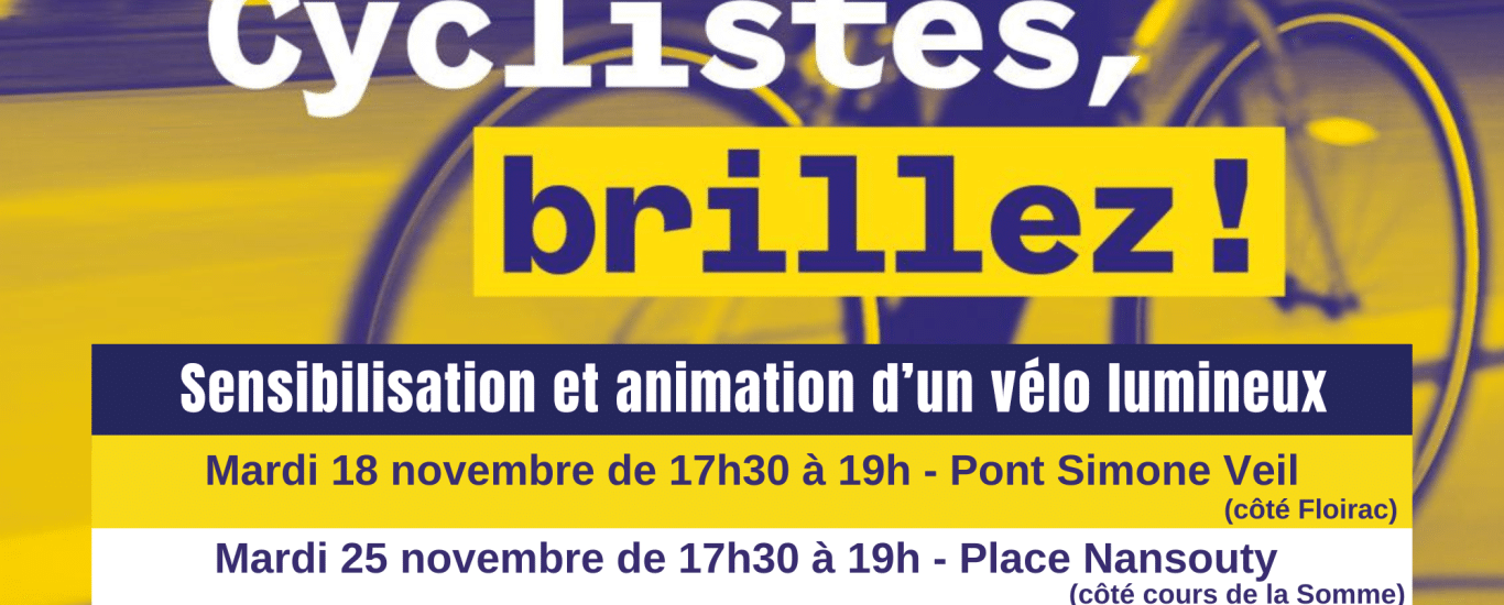 Du 1er novembre au 15 décembre 2025, les associations membres, partenaires et acteurs·trices engagé·es en faveur des mobilités actives se mobiliseront pour rappeler l’importance d’un bon éclairage afin de pédaler en toute sécurité.